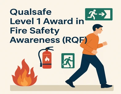 The Qualsafe Level 1 Award in Fire Safety Awareness (RQF) is a nationally recognised half-day qualification designed to provide employees with essential fire safety knowledge in the workplace. It covers fire prevention, common causes of workplace fires, fire risk control, emergency response procedures, legal responsibilities, and the safe use of portable fire-fighting equipment, in line with National Occupational Standards and HSE good practice guidance. Suitable for all staff as an introductory course, it helps employers meet legal duties while promoting a culture of safety. The qualification involves a 15-question multiple-choice exam, is valid for three years, and supports progression to Level 2 Fire Safety or Health and Safety qualifications.