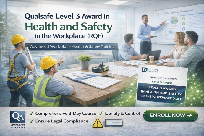 The Qualsafe Level 3 Award in Health and Safety in the Workplace (RQF) is a nationally recognised qualification providing advanced health and safety knowledge.