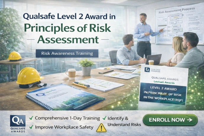 The Qualsafe Level 2 Award in Principles of Risk Assessment (RQF) is a nationally recognised one-day qualification that provides learners with an awareness of workplace risks and how they can be controlled. It introduces the basic principles of risk assessment, including common causes of work-related fatalities, key terminology, the risk assessment process, and methods for prioritising risks, although it does not include practical risk assessment activities. The course is suitable for anyone in a work environment who would benefit from improved risk awareness, even if they are not responsible for conducting assessments. Assessment is completed through a 30-question multiple-choice exam, with successful learners receiving an e-certificate.